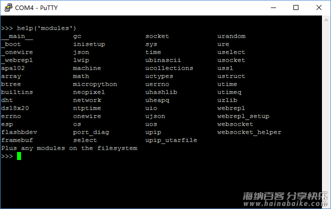 其实各种刷ESP8266/ESP32的软件都可以搞(比如刷NodeMCU的软件),不过我这还是出问题了:刷完后无限输出乱码。然后参照Micropython官方的教程,用esptool先清除所有的FLASH,然后重新刷入,正常运行: