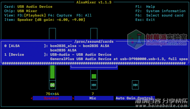 标签: 树莓派raspberrypihardwarelinux编程pythonlevel3linumultimedia语音声卡alsamixer