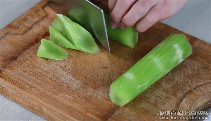 1、莴苣去皮洗净切滚刀块;