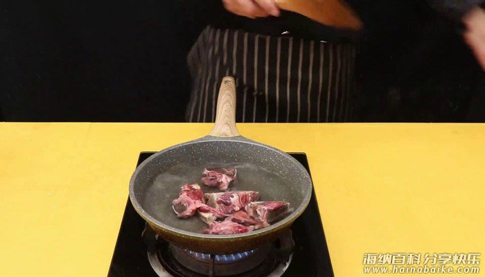 2、锅中加入适量清水,放入牛骨,大火煮至沸腾,撇去浮沫,捞出洗净;