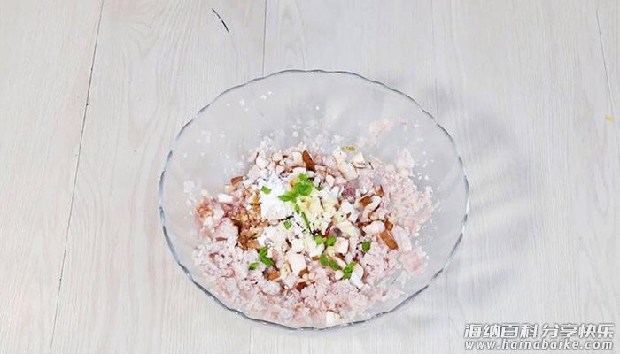 2、猪肉末加料酒,拌匀,腌制15分钟;